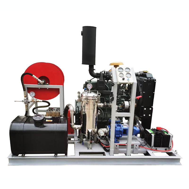 產品優點 | 55KW柴油機驅動,動力強勁 卷管器收納高壓膠管,使用整潔方便 意大利HAWK泵,100L/min大流量 意大利進口調壓閥,輕松實現0-20MPa調節 采用不銹鋼袋狀過濾器,保證水質高要求 機油表、水溫表、油溫表等實時顯示 |