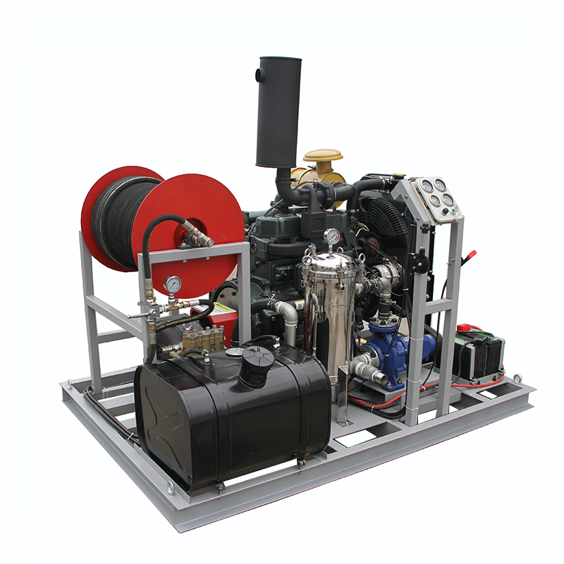 產品優點 | 55KW柴油機驅動,動力強勁 卷管器收納高壓膠管,使用整潔方便 意大利HAWK泵,100L/min大流量 意大利進口調壓閥,輕松實現0-20MPa調節 采用不銹鋼袋狀過濾器,保證水質高要求 機油表、水溫表、油溫表等實時顯示 |